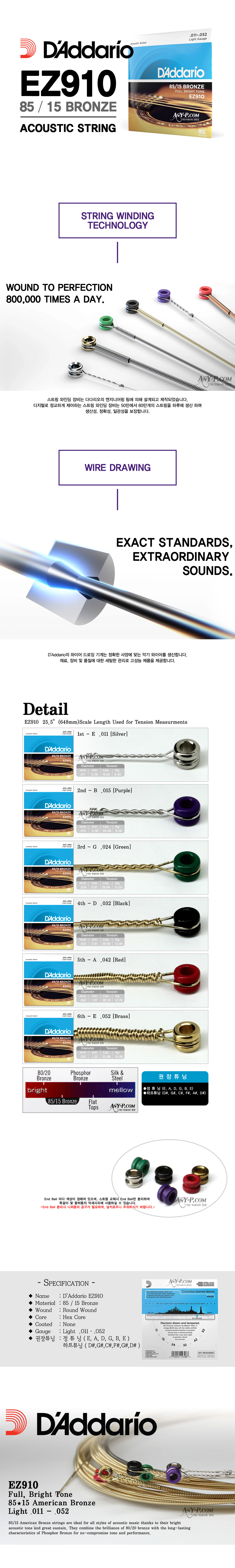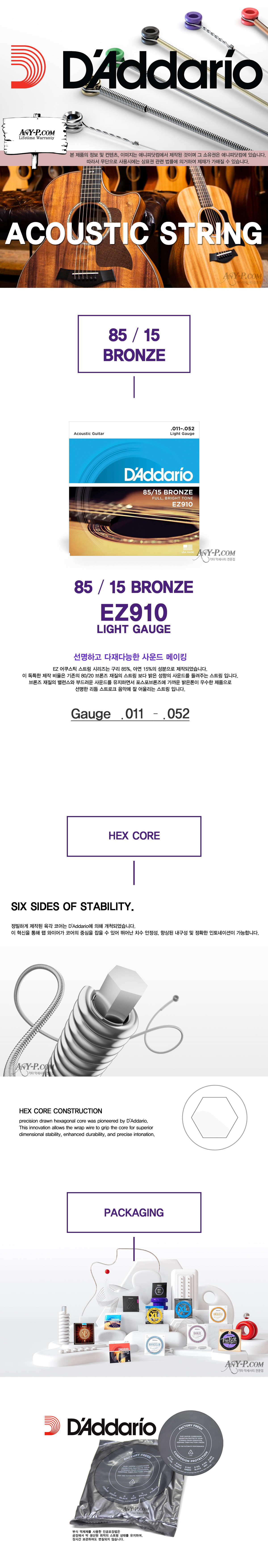 ´Ù´Ù¸®¿À 85/15 ¾Æ¸Þ¸®Ä ºê·ÐÁî EZ910 Åë±âŸ ½ºÆ®¸µ D'Addario 85/15 American Bronze Light