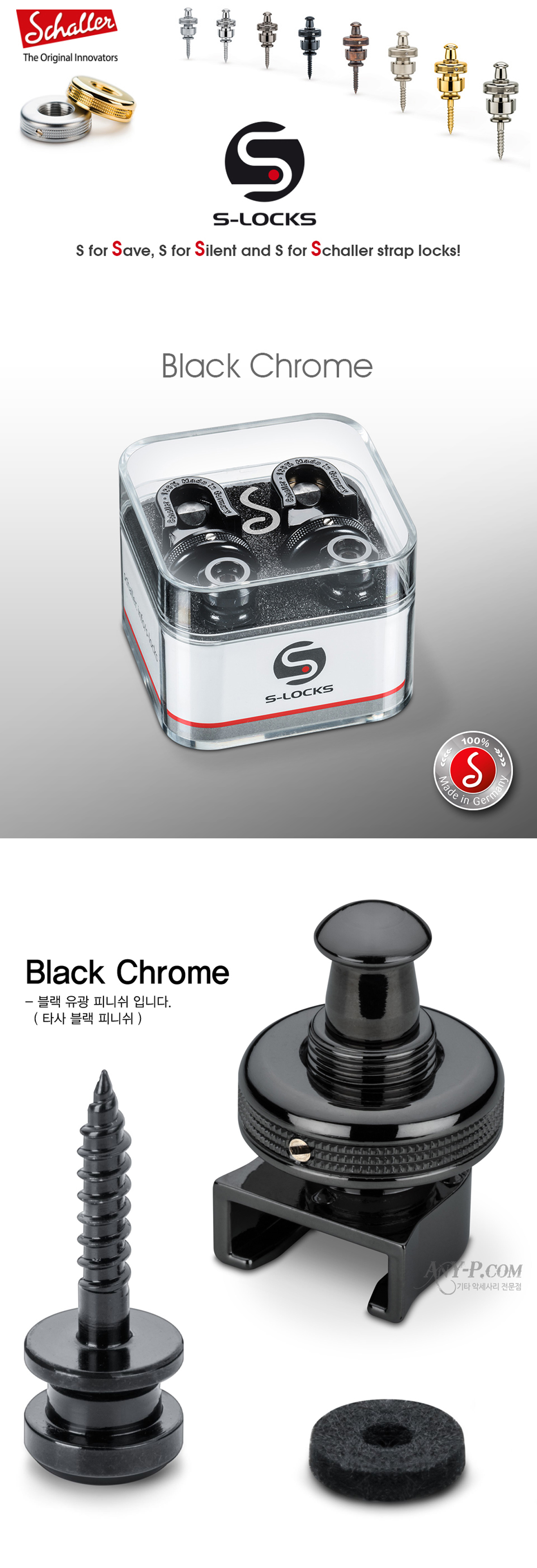 ½©·¯ ºí·¢Å©·Ò (À¯±¤ ºí·¢) ½ºÆ®·¦¶ô Schaller S-LOCK BlackChrome ·»Ä¡ ÁõÁ¤