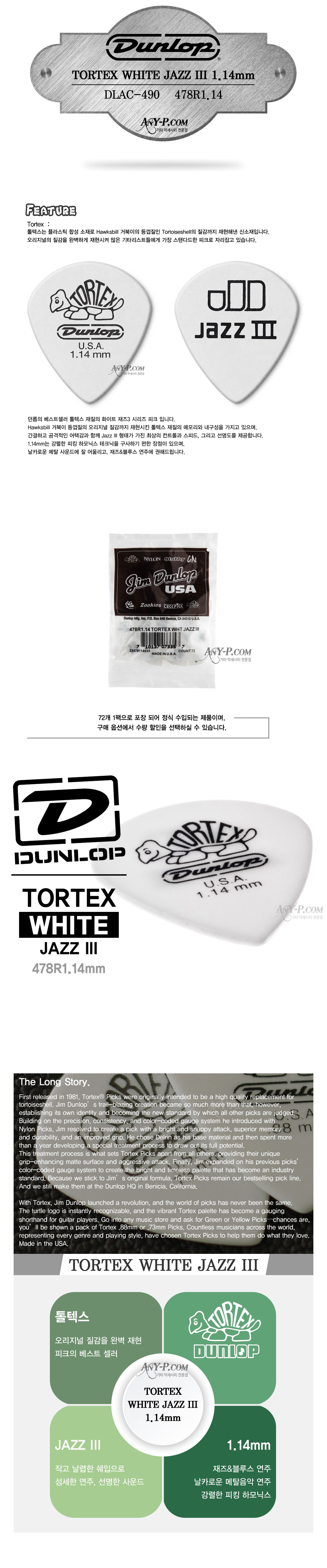 [´ø·ÓÇÇÅ©USA] Dunlop Tortex White JazzIII 1.14mm / 478R1.14 / ÅçÅØ½º ÈÀÌÆ® ÀçÁî3 |