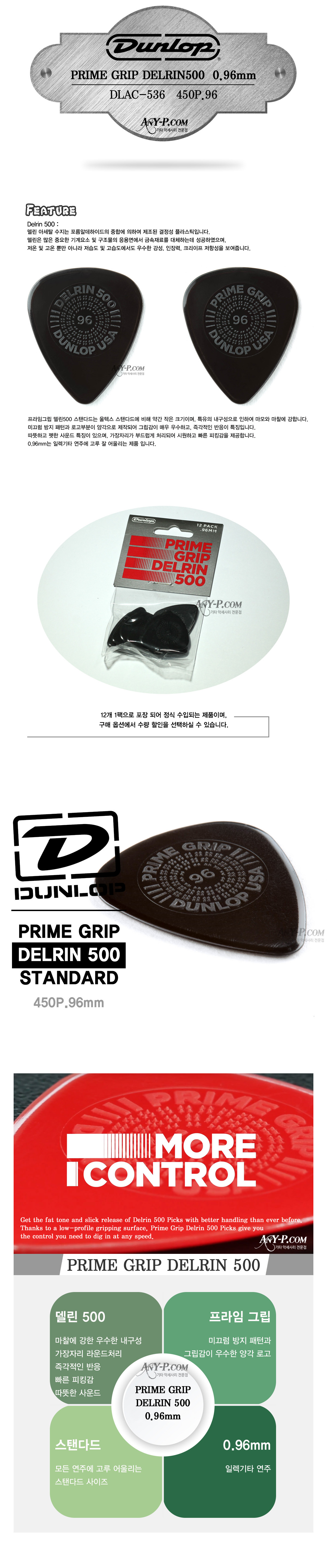 [´ø·ÓÇÇÅ©USA] Dunlop PrimeGrip Delrin500 0.96mm / 450P.96 / ÇÁ¶óÀӱ׸³ µ¨¸°500 |