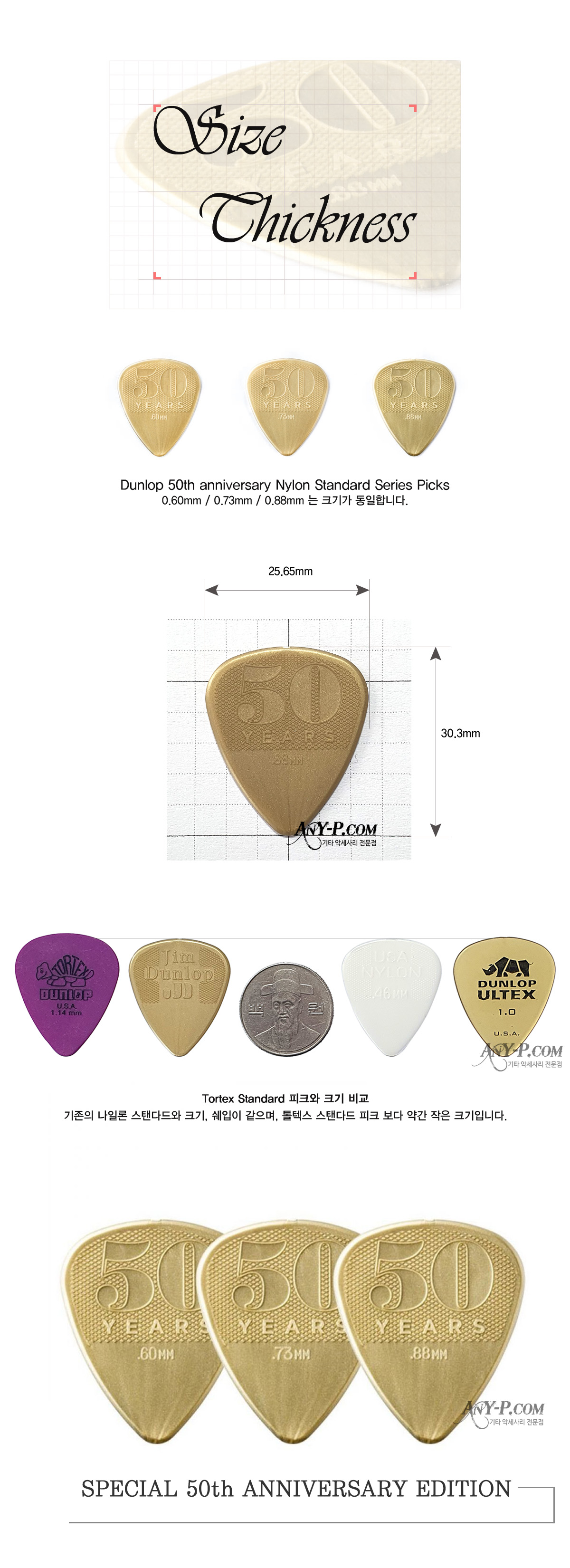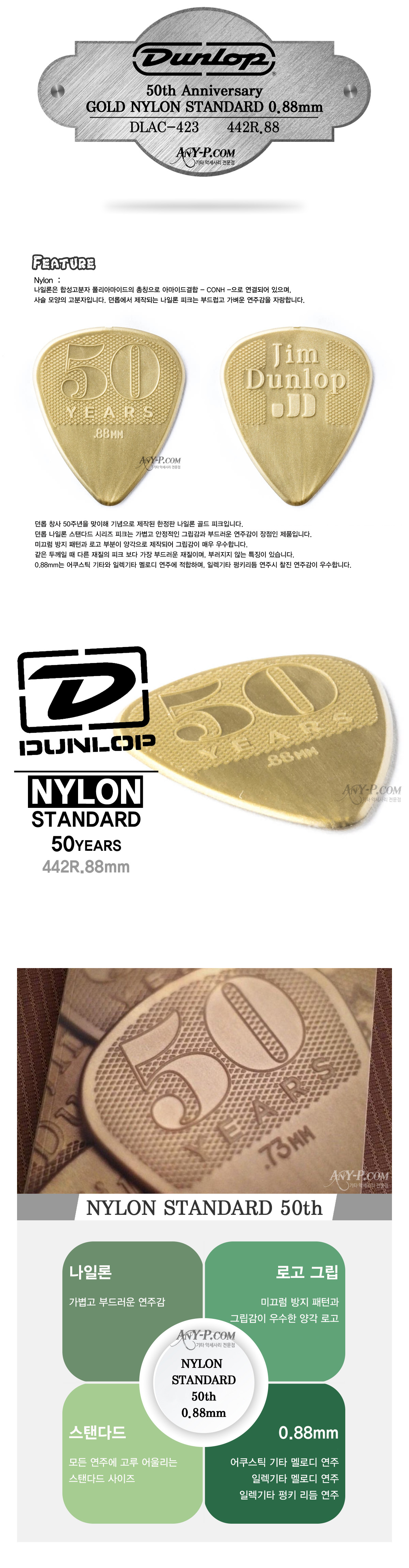 ´ø·Ó 50Áֳ⠳ªÀÏ·Ð ½ºÅÄ´Ùµå 0.88mm Dunlop Nylon Gold Standard 442R.88