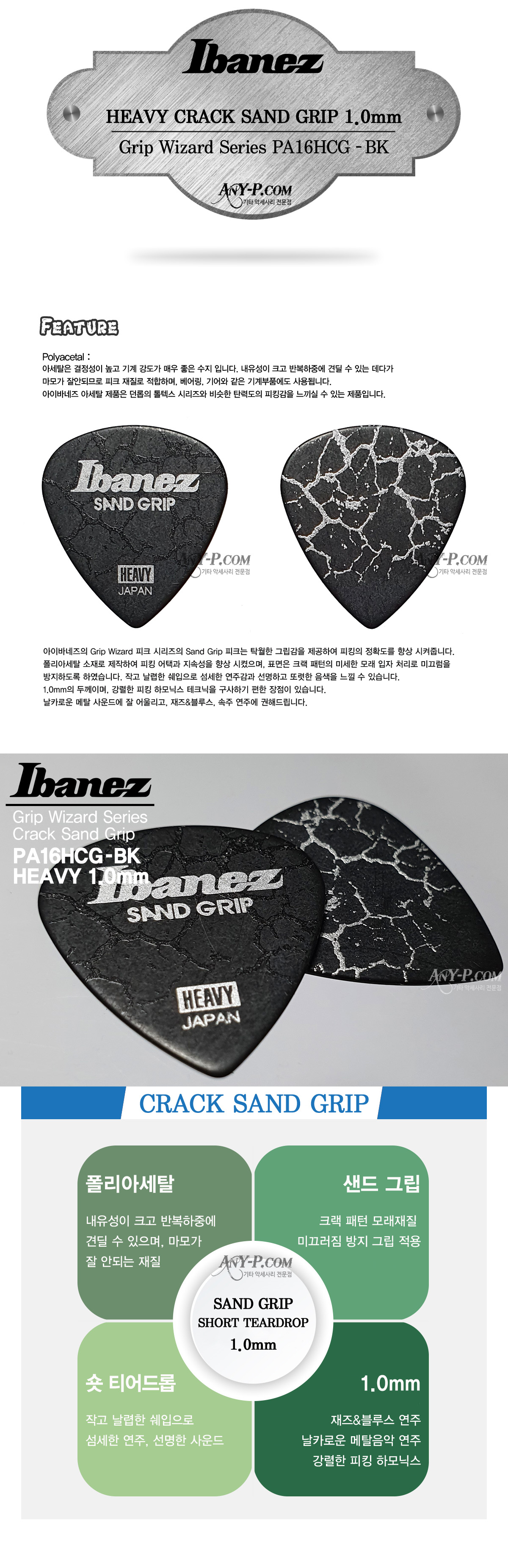 ¾ÆÀ̹ٳ×Áî Å©·¢ »÷µå±×¸³ ¼ô Ƽ¾îµå·Ó Çìºñ 1.0mm BK Ibanez Crack Sand Grip PA16HCG-BK